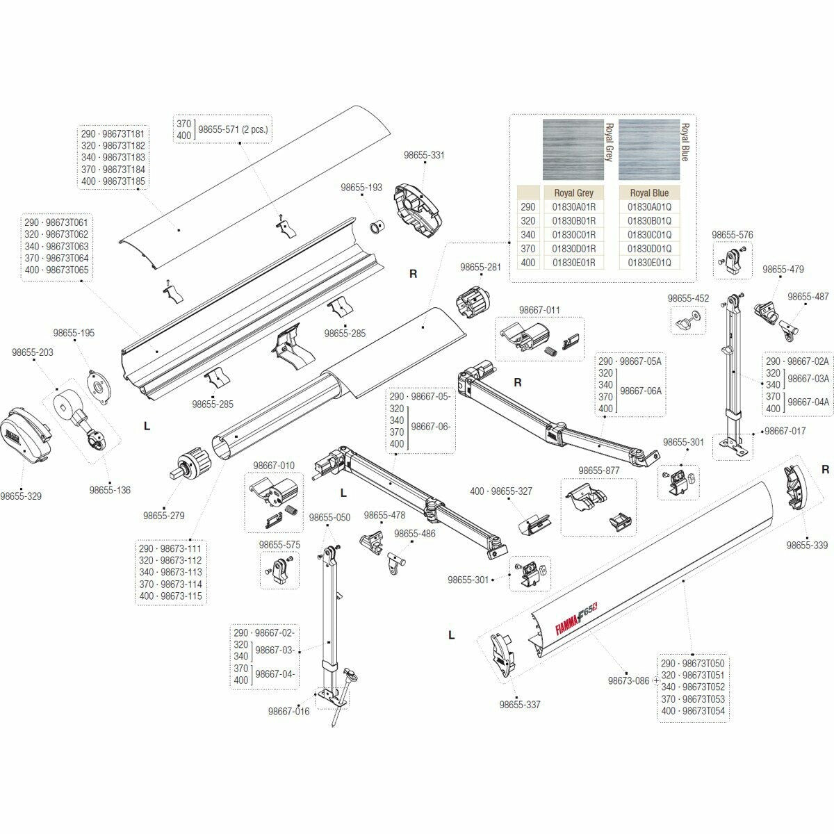 This part is sourced from official Fiamma product materials to ensure authenticity. Compatible with a wide range of Fiamma installations depending on model and configuration.